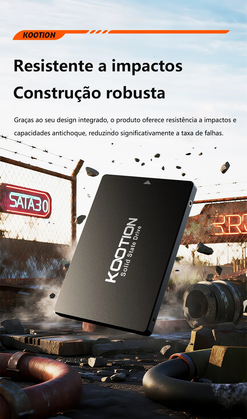 Sem componentes mecânicos, este Solid State Drive de 2,5 '' é resistente a choques e às vibrações e pode suportar temperaturas extremas de -10 ° C-70 ° C tem oferecendo melhor segurança de dados e otimização de desempenho.