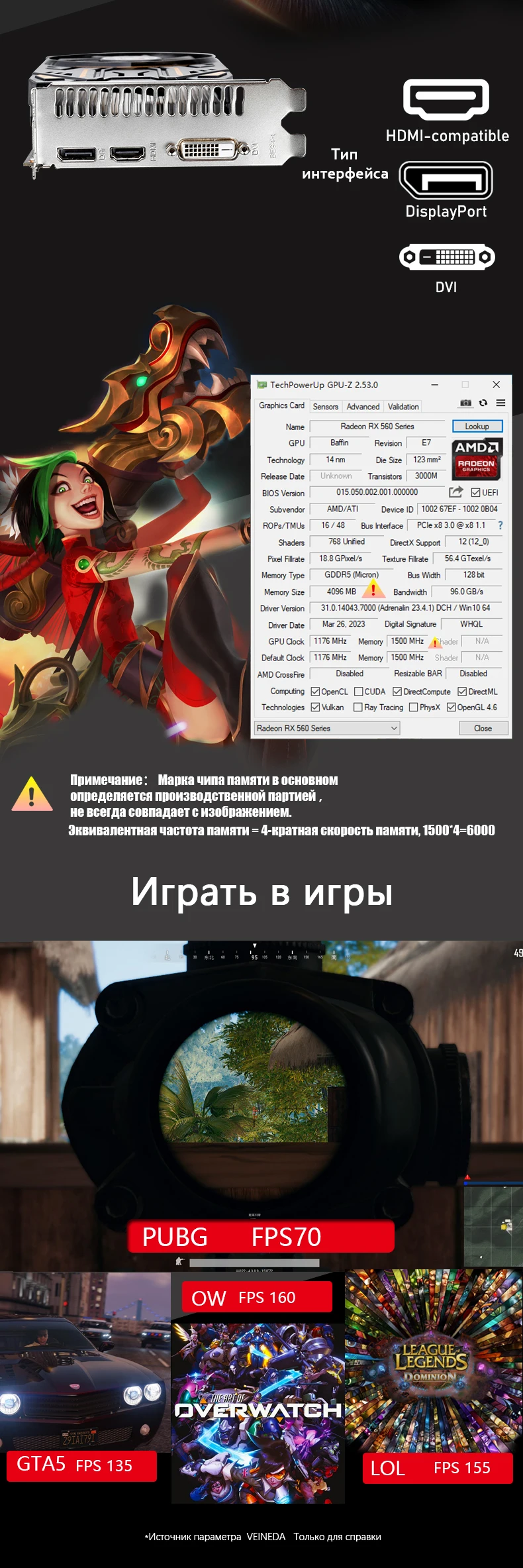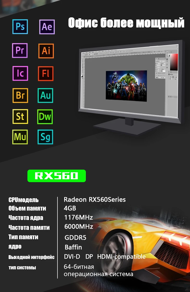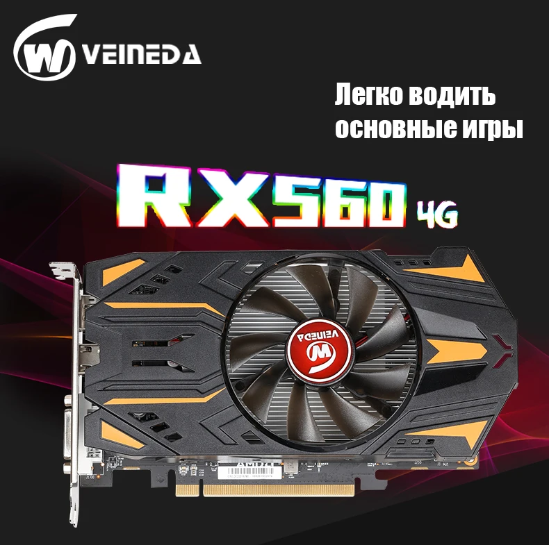 Placa de vídeo VEINIDA Radeon RX 560 4GB GDDR5 128 bits para jogos de computador desktop placas gráficas de vídeo PCI Express3.0 para jogo de cartas Amd